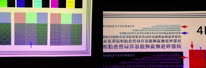 再通过一张分辨率的测试图就能更加明显的看出,在投放70寸画面的情况下。即使将画面放大,细节部分丢失的也很少,没有出现明显的模糊状况!这对于后面的观影画面质量有着至关重要的作用!