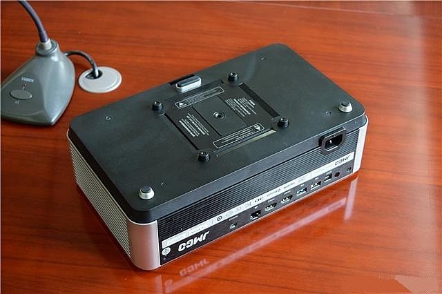 接口方面还是很丰富的,都被集中放置到了机身背面,从左到右依次为:光纤接口、USB 3.0、USB 2.0、HDMI 1、HDMI 2和以太网口,可以方便用户进行外接设备扩展。坚果L2X办公投影支持U盘直读,内置丰富的办公软件,无需电脑配合也能正常使用,而且还支持2.4/5GHz双频WIFI直连,可以让你摆脱线材的束缚,无线也能投。