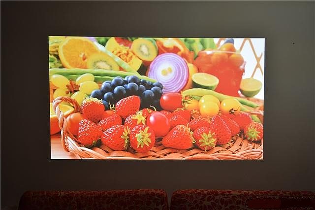 到底坚果L2X的实际投影效果如何,下面我们还是用事实说话吧。为了充分测试坚果L2X的能力,这里在白天不拉窗帘的情况下,而且还将室内的灯光全部开启,来对于投影的投射画面效果进行了实测。