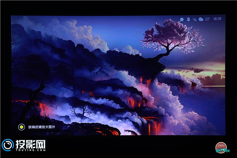 不受环境光影响之后,米家投影仪的表现整体都变现的突出了,颜色更加生动,风景光线的明暗对比更清晰,亮部不失真,暗部保留大量细节,人物的发丝细节更为真实,整体色域更广。ZNDS评测君测试过不少智能投影,米家投影仪虽然标明只有800ANSI流明,画质表现却丝毫不逊于标明1000ANSI流明的智能投影,画质色彩上甚至更胜一筹。以下为拍摄原图,肉眼观看的真实效果还要更好。