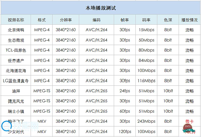 强大的性能除了表现画质外,ZNDS评测君还测试了4K视频、HDR视频以及3D视频本地播放,4K视频播放中,除了帧率达到120fps的《少女时代》米家投影仪播放不出,码率最高的《鸭子飞了》播放稍微卡顿外,其他编码形式、帧率或者码率都播放很流畅。