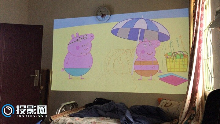 入手之后试了一下,晚上关灯的效果完全可以接受了,小猪佩奇的照片白天拍的,效果也不错,音箱外放声音很洪亮,调到最大还真有点家庭影院的感觉,在房间播电影真是比装个电视方便多了