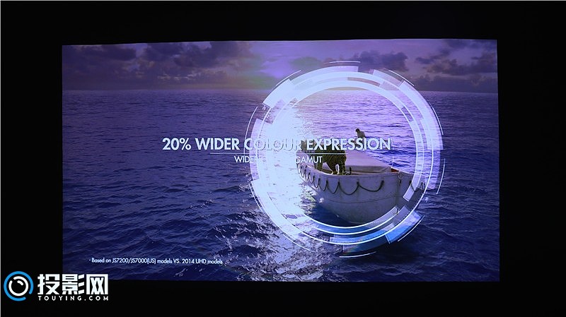 暗光环境下,相机拍摄会有一些畸变无法避免,亮度来说,肉眼所见的画面表现不比电视的差,而且这还是在白墙的情况下。明暗对比鲜明,暗部细节保留,亮部不至于过曝,人物的肤色肌理表现细腻,风景光线层次过渡自然,总的来说,不至于虚标亮度,画面亮度确实不错。