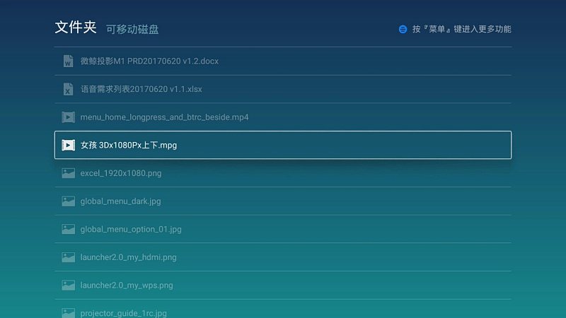 小贴士:目前M1只支持本地播放3D电影,用户可自己百度下载3D资源到U盘即可;