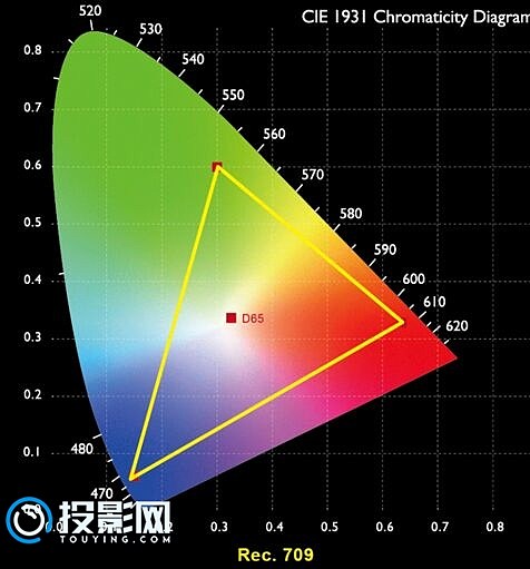 市面上常见的投影光源有三类,灯泡、LED以及激光。灯泡光源应用于绝大多数的专业家用投影,优势在于亮度高,比如明基i705的亮度就达到了2200ANSI流明,适用于客厅环境观影。而由于灯泡发热量较大,出风口热度偏高,大部分人会认为灯泡机的使用寿命比LED或激光短,但是平均5000小时以上的使用寿命,其实已足够应付普通家庭的日常使用。 LED光源大部分应用于微投,优势在于几乎不发热,降低了散热模组的大小,使得产品本身便于携带,其使用寿命也较长。但其产生的亮度一般在1000流明左右,适用于较暗的观影环境。 激光是近年新兴的光源,优势在于亮度高,能达到较广的色域,但由于成本还未压下来,所以普及度不高。 作为家庭使用的投影机,经过消费者使用反馈和实验室数据表明,1500-2000 ANSI流明才是平衡亮度和色彩的适用亮度范围,因此在选购投影机时需要注意光源的区分与亮度的参数值(流明)。 色彩:感官愉悦的大前提 色彩是否准确真实,是衡量画面质量的必要因素。在对投影设备的测试中,普遍使用的是Rec.709国际标准色域,这是高清电视使用的国际标准,也是影院电影后期蓝光碟发行的通用色域标准。