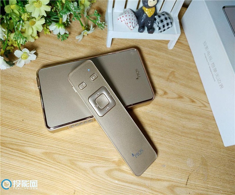 翻个身看到主镜头以及位于其侧边的微动电机,通过这个微动电机带动内部的镜头组来实现自动调焦功能。主镜头内部使用了常见的投影关键数字微镜元件——0.3英寸DMD(Digital Micromirror Device)来实现神画小媚的投影功能,可视数字信息显示。