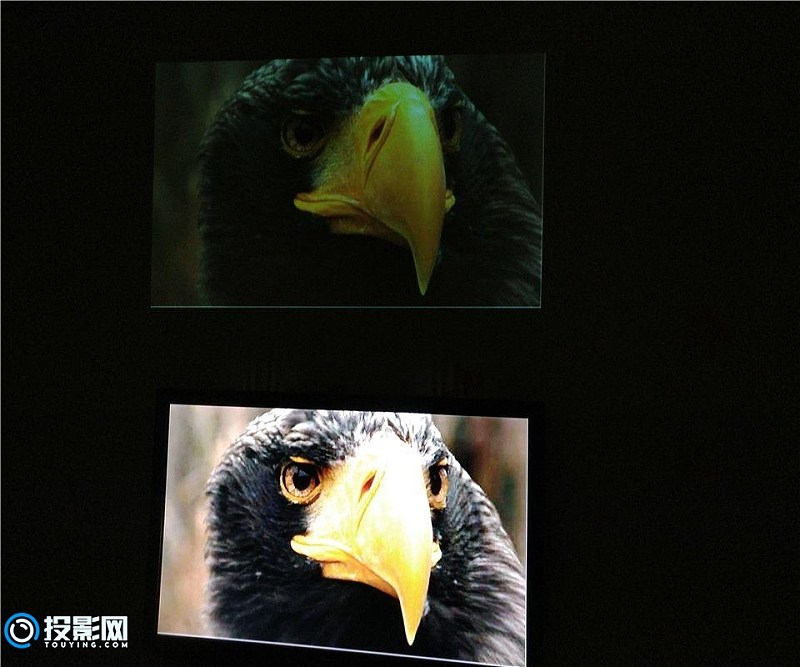 看过上面几组对比图片,是不是给你的第一感觉:同尺寸条件下,神画小媚画质偏暗不够鲜明。其实,这跟我的拍照对焦点有一定的关系,像下面这组同样的画面,拍照对焦点在神画上面就比较鲜明一点,当拍照对焦点移到下面电视后,画面就开始暗了下来。另外一点,由于电视的成像(直投)跟投影成像(反射)截然不同,电视工作中背光较亮。相当于开启了室内灯光,在这个环境下的神画微投出来的画面较暗了许多。