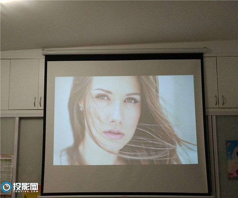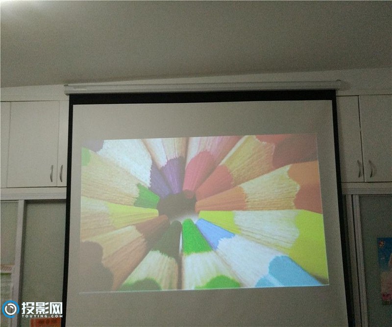 换个环境,来到卧室看看开灯和关灯效果,使用的是普通100寸白玻纤幕布作为神画小媚的投射面。如果使用高分子纳米抗光幕布效果应该更加完美。通过图片可看出在色彩还原能力还是很高。