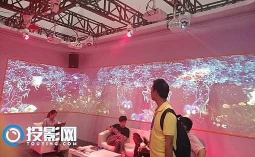 本次夏普投影机助力打造的沉浸式KTV娱乐系统共有2组展示,一共采用了16台夏普XG-ST350A短焦投影机。其特点首先是大面积的可视界面,相比传统的单面墙播映,大幅270度环绕巨幕能够给客人带来沉浸式的更加震撼的视觉体验;其次是主题的多样化,大屏幕内容可以随时切换,为不同房间营造不同的氛围,既能满足不同消费者的个性需求,也可以给客户带来更多愉悦身心的享受。此外,通过交互组件的使用,还可以附加交互式体验,进一步增强了娱乐性。