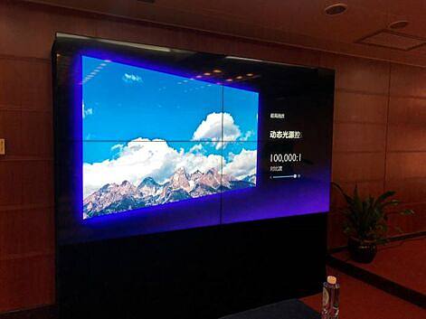 拼接墙可广泛用于监控视频、商场广告等领域,市场开阔。在现场,4台明基PH556组成2×2视频墙,这款产品四边均为0.9mm超窄边框,实现业界领先的1.8mm拼缝,画面一体感更佳,画面明亮锐利,MDA多屏管理系统让用户易于操作。