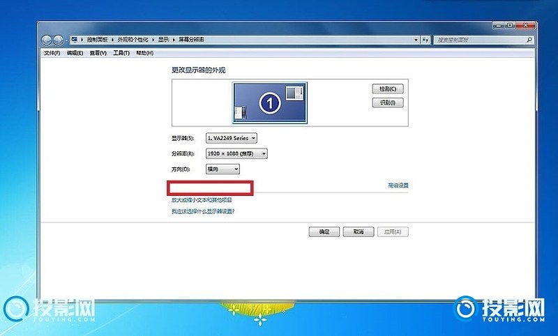 点击屏幕分辨率之后会看见以下图片的画面,红框标注的地方有的会有“连接到投影仪”几个字,点击进去就好了,如果没有也不要担心,小编来教你用键盘操作的方法“按住windows+p键”就会看见如下画面。