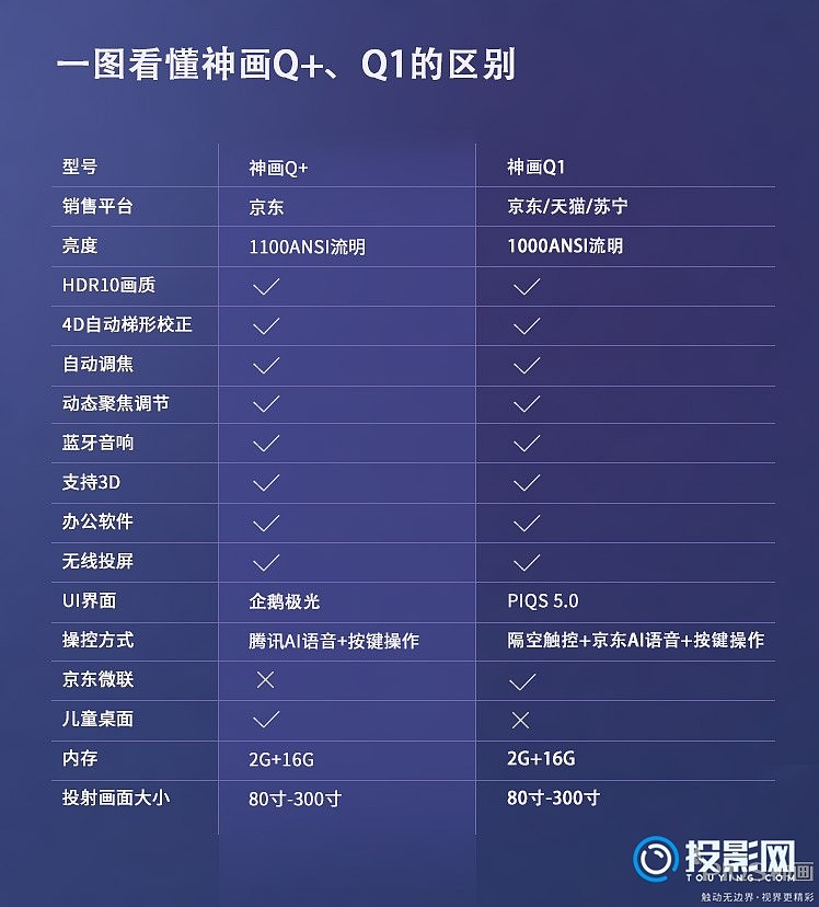 亮度比较来说,神画Q+为1100ANSI流明,在Q1的基础上提升了100ANSI流明,对于参数有一定要求的用户可能会比较满意。