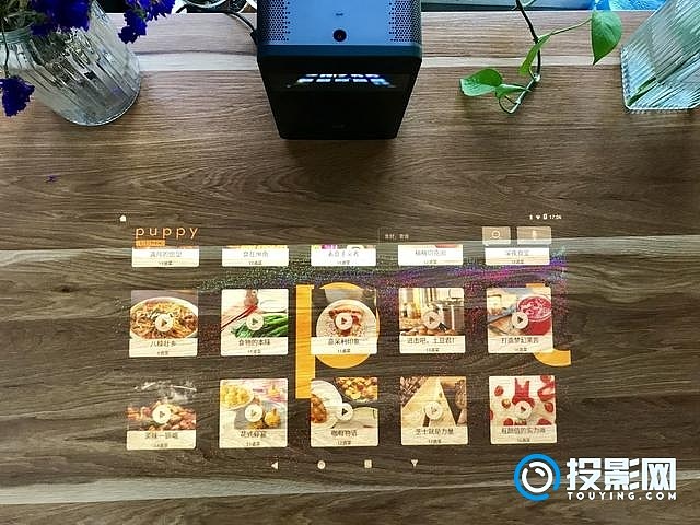 再有就是厨房应用,现代人做饭往往都是根据美食家的做法来做,如果以前想一边做饭一边看视频教程,往往很麻烦,屏幕小不说,手上有水、油、面等东西时就无法操作平板,但有了puppy cube,放在厨台一侧投影做菜视频,无论手上有水有面,都能直接触控操作,而且大屏看得更清楚。值得点赞的是,为了满足厨房这一使用场景,puppy cube内置了超过10W+的中西精选菜谱。