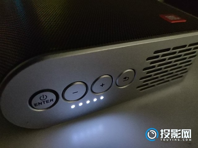 兴许是为了不破坏外观本身质感,名为优派产品,但在机身正面却只有小小的JBL红色标牌,优派M1+内置了双3W的JBL音响。