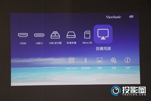 优派M1+自带16GB内存与系统菜单,操作方式和电视遥控无异,M1+系统几乎将所有的投影连接方式均放在主界面,除功能设置外,没有额外二级菜单,这对于孩童与老人来说也算是个优势,上手快,操作便捷。