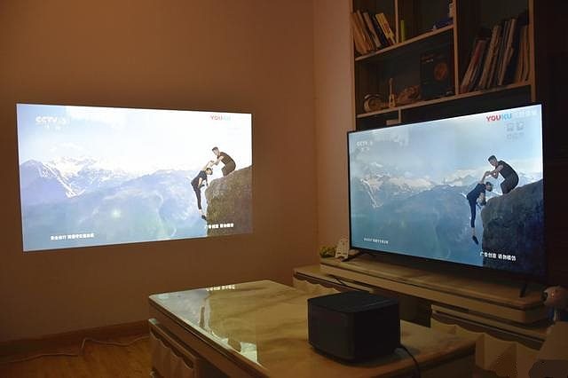 为展示极米H2的画面效果,我把电视,笔记本,极米H2投影三者同屏拍摄,极米H2的色彩虽然大体偏暖,但相比于我的笔记本来说,画面就不显得那么暖了。大家不要理解为暖的不可接受。