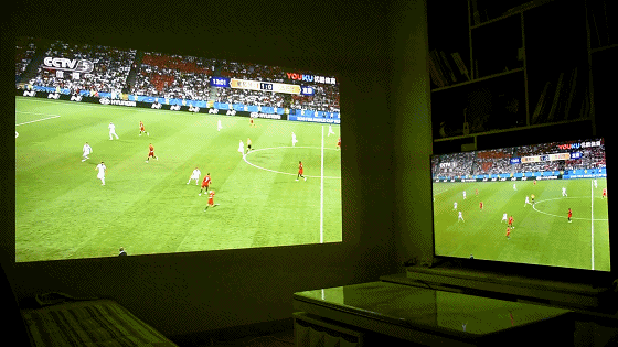 相比于电视看球,极米H2可以投出更大的尺寸。世界杯这一段时间,我几乎一直使用的都是极米H2看球。因为更大的尺寸,更好的气氛。运动补偿是极米H2另一个特色,相比于我以往看没有该技术的投影来看,运动补偿技术确实让足球看起来拖影更少。球的运动轨迹看起来更为清晰。需要注意的是信号源如果不够清晰的话,投影出来的效果会差上不少。在使用极米H2看球时一定要保证高清信号源。至少是全高清电视台同等画质视频源。