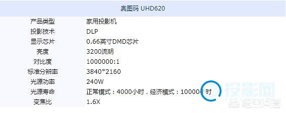奥图码UHD620投影仪采用DLP投影技术,标准分辨率为3840×2160,可以投射出清晰的画面。亮度则达到了3200流明,在使用中不必考虑采光的问题。另外在经济模式下本机的光源使用寿命能延长至10000小时,耐用度非常高。