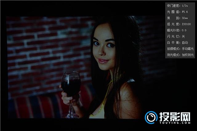 ▲再来看看高清图片的投影效果,原图画面亮度还是可以的,投影后,整体偏暗,黑色部分也丢失了一些细节,色调偏冷。右上角是我相机设置的具体参数。