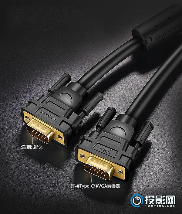 细心的网友可能发现,投影仪上的VGA视频接口是母头,而绿联Type-C转VGA转换器上的也是母头,因此还需要一根VGA线才能将这两个设备连接在一起。