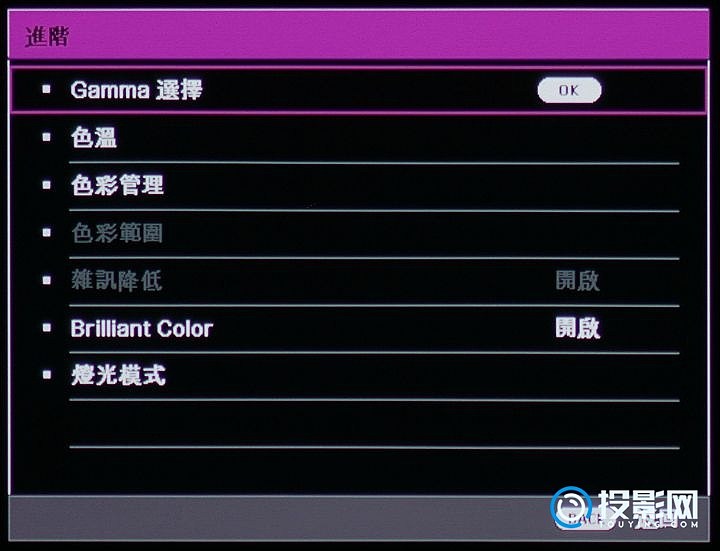 在进阶影像设定中,则包含Gamma值、色温、色彩管理以及色彩空间等项目。