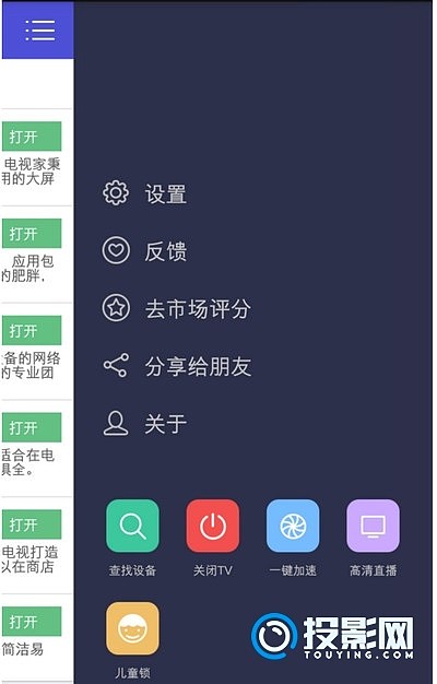 设置:在设置选项中大家可以进行一些个性化的设置。(关机、一键加速、高清直播、儿童锁等功能设置)