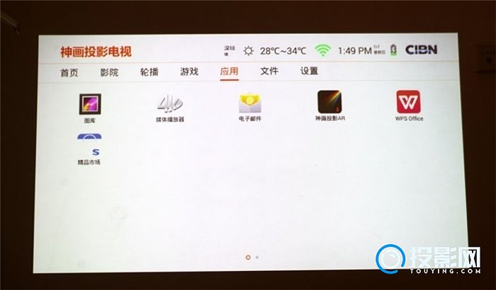 选择最新的系统更新后,应用里面有图库、媒体播放器、电子邮件、神画投影AR、WPS Office、精品市场这六个功能,其中值得介绍的就是神画最新并领先全球的黑科技AR功能,能够展示出虚拟和现实混合搭配的效果。