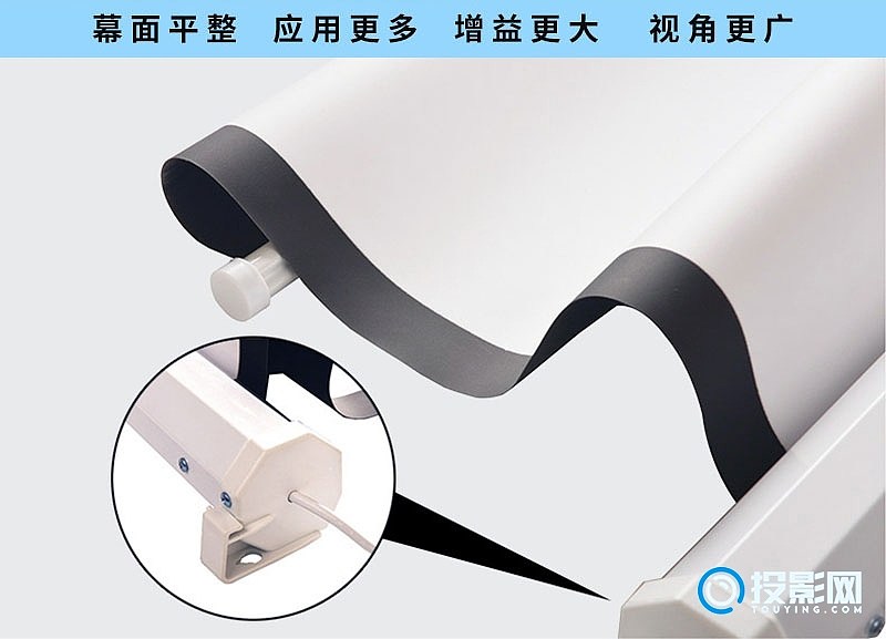 从投影幕布的物理属性来测评,白塑幕是最多功能及反射特性最均匀的投影幕原料之一,它可以提供无束缚的视觉角度及图像的完美一致性,同时赋予精确的清晰度,尤其是对黑、白色以及其它颜色的还原较好。