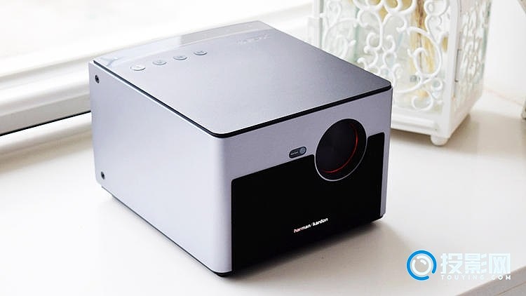 正面哈曼卡顿的LOGO非常显眼,有了哈曼卡顿加持,加上两个40mm双喇叭单元,在音质方面自然不用担心。值得一提的是,极米H2 Slim采用了电动滑门式镜头设计,在关机状态下镜头盖会关闭,在开机后会自动打开,不用担心忘了合上镜头盖,这也是对镜头的一种保护。