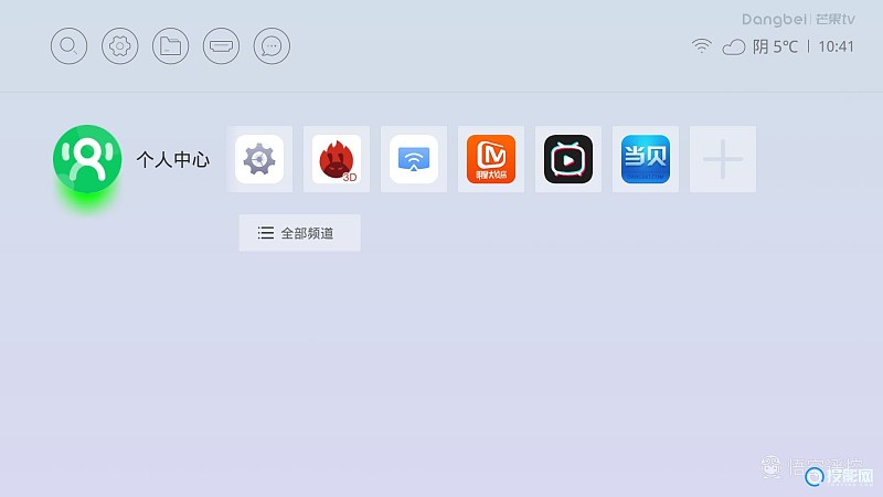 当贝投影F1的UI界面最干净的时刻。添加应用点击“➕”。