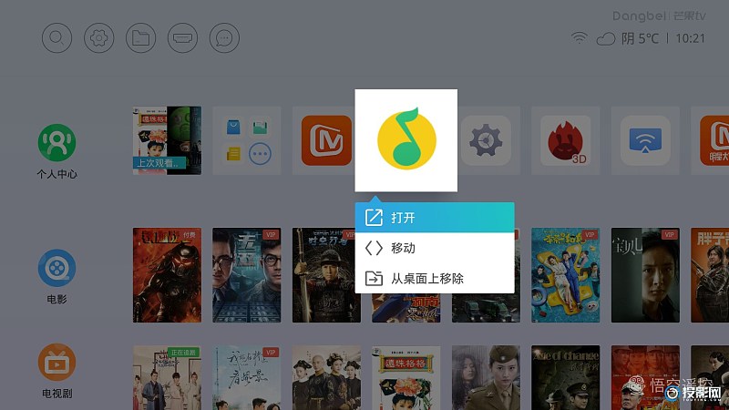 如果对这个软件不喜欢或者不想要快捷方式了,也是可以删除的,找到软件后按遥控器菜单键就可以进行移除了。