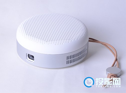 俯瞰T9,与其说是投影仪,个人觉得它更像个音箱,上盖密布的小孔,和我们常用的音箱产品相似,带有铭牌的棕色挂绳,看上去很复古。