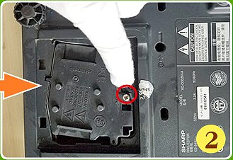 1、夏普投影机盖板在机器底部,首先拧螺丝到最松的状态,然后将灯泡盖卸下(第一次更换灯泡盖板上有撕毁不保标贴);