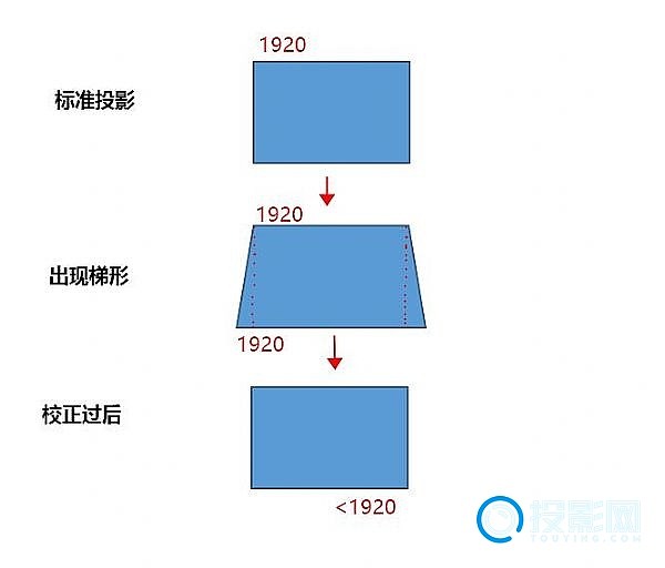 如果无法保证二者的垂直,画面就会产生梯形,如下图所示。