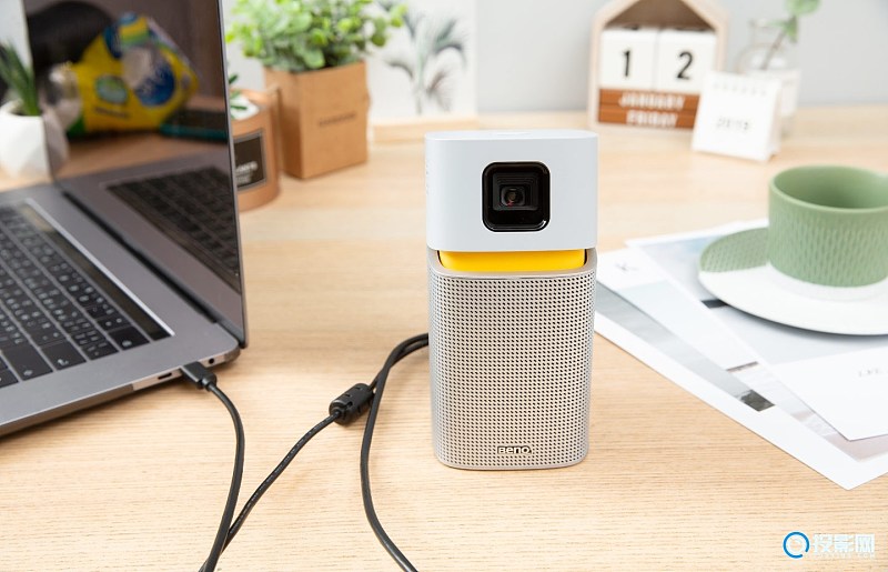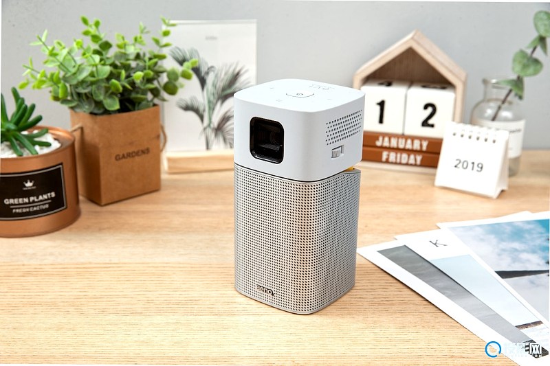外型简约并深具亲民且具科技感,而方形柱状的机体,搭配圆弧修边的设计,再加上机身上下两层不同质感,打造出让人惊艳的外观。当然第一眼也能看到,位在机身正面上方就是投影镜头,拥有1.3投射比表现,仅需2.3m就可投影80寸画面。