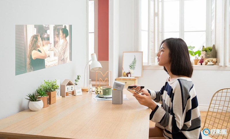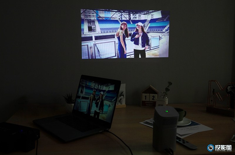如此一来就能观看画面瞬间变大的图像,对于小家庭、租屋族甚至是租住套房、雅房的学生族群来说,GV1真的是极为便利的观影设备,仅需书桌宽度的距离,就可投射出30、40寸左右的画面,且GV1相比于30寸以上液晶屏幕,体积小巧极多,摆设也更加方便,当然是最佳显示器材选择。