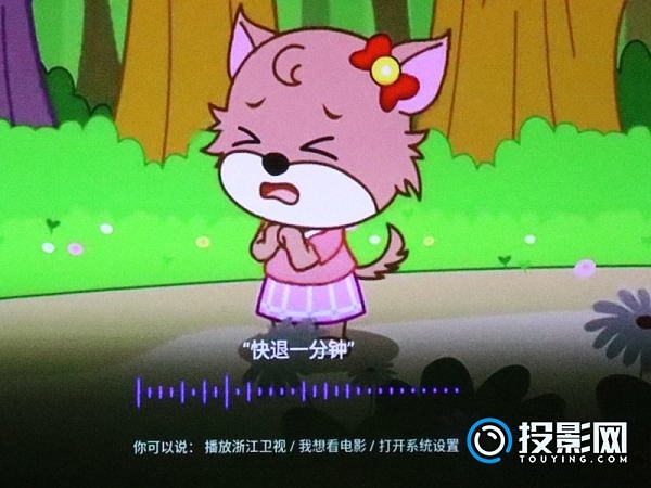 你在观看影视的时候,想快进,快退,暂停或者加减声音,还是重新搜索电影,音乐,都能够通过语音来实现操作。比如说,你正带着孩子在看寓教于乐的动画片,忽然孩子想去洗手间,你直接按一下语音键,说“暂停”,动画片就自动暂停下来。即使你没有用语音把内容暂停下来,错过了几分钟,你也可以通过说出如“快退1分钟”来接着观看落下的内容。