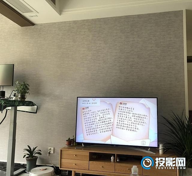上面,就是安装好以后的效果图。跟我想的一样,确实好看多了有没有,哈哈。不过,我前面的担忧也时时在困扰我,左边这么大的光源干扰,白天如果不拉窗帘,抗光幕到底能不能看?带着这样的想法,我试了试,毕竟旁边还有几个来帮忙安装的朋友,效果不好的话,我这个人岂不是丢大了?