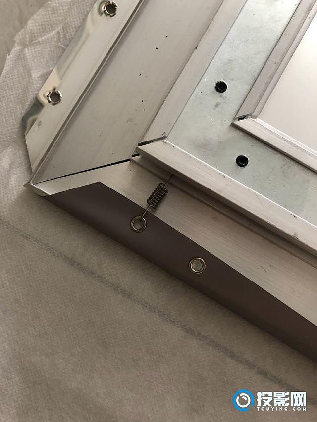 固定的时候,有两个需要注意的点,第一,弹簧一定要垂直,第二,要先固定两个短边,不然后面很难将幕布扯成平的。