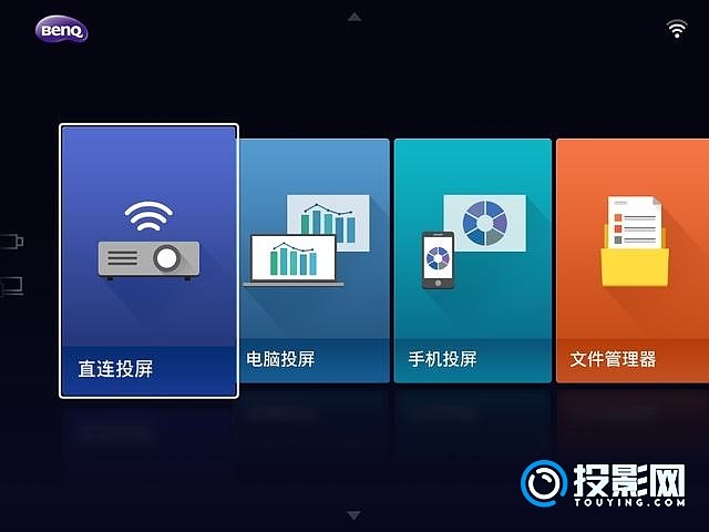 与传统投影机不同的是,在实际使用中,明基E500只需要连接一根电源线就可以使用了,进入到界面之后,可以看见投影仪有三种投屏方式,分别是直接投屏、电脑投屏、手机投屏,这里我就先演示手机投屏和电脑投屏,首先,找到Miracast,然后在手机设置中找到无线显示,连接即可使用,非常的简单,即使在没有wifi的情况下,明基E500也支持无线热点功能,连接设备进行无线投屏,适应各种不同的环境使用。