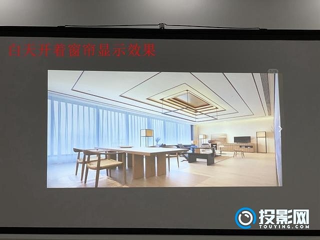 当然了,如果是晚上连夜开会,开灯也不影响投影的显示效果,而且大家应该可以发现,投影的画质依然很细腻。