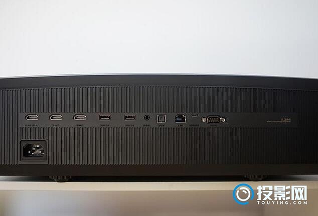 背后的接口部分,极米A2Pro绝对是顶级规格配置了, HDMI 2.0、USB 、光纤、有线网口、RS232串口等接口应有尽有,满足你的一切外接扩展需求。
