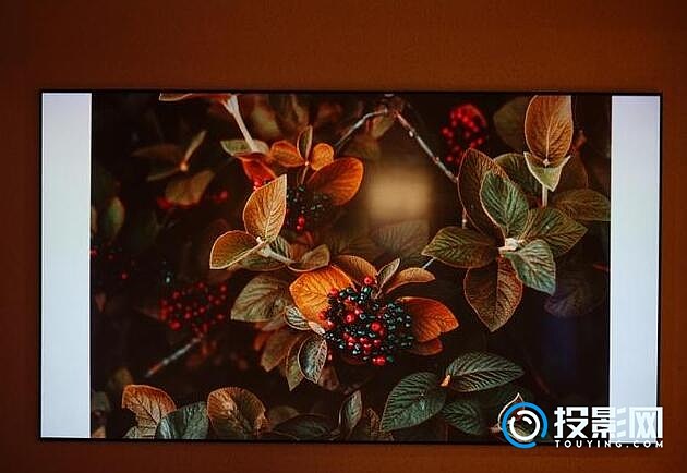首先是色彩测试,我们可以看到在投射的几张HDR色彩图片上,极米A2 Pro的表现与原片很接近,不论是色彩还原还是高光部分的压制都非常的精准。尤其是树叶的那组照片,红色的花骨朵和暗色调的树叶形成了非常鲜明的色彩反差,在极米A2 Pro上则表现出了很好的色彩层次感。
