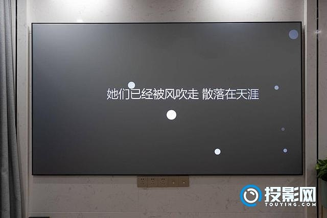 在系统层面,极米RS Pro所搭载的 GMUI 也配合其声音功能,开发出了三种音乐背景风格,其中笔者最喜欢的是艺术歌词,选择后歌词会一句一句的跳动出来,相比传统一字一句的显示歌词,跃动出来的歌词显然要更生动一些,在细节上做得非常出色。