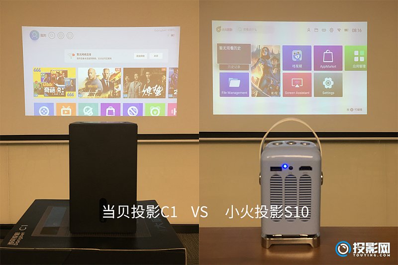 小火投影S10:系统内存是2G,处理器是8核,均优于当贝投影C1;体积小巧可一手掌握,圆润的设计时尚又安全。系统页面更简洁,提手及一体式支架底座的设计,更加便携,使用体验更好。