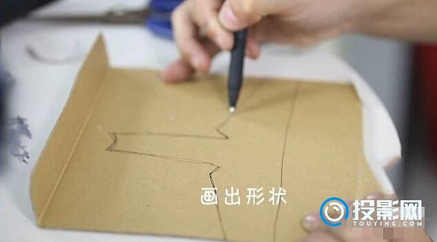 步骤②在硬纸板上画出支架形状,按轮廓剪下。
