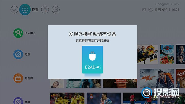 第二步:U盘接入投影仪的USB接口,并打开U盘文件(多数智能投影仪能够自动识别到U盘,未能自动识别的可在文件管理器中打开);