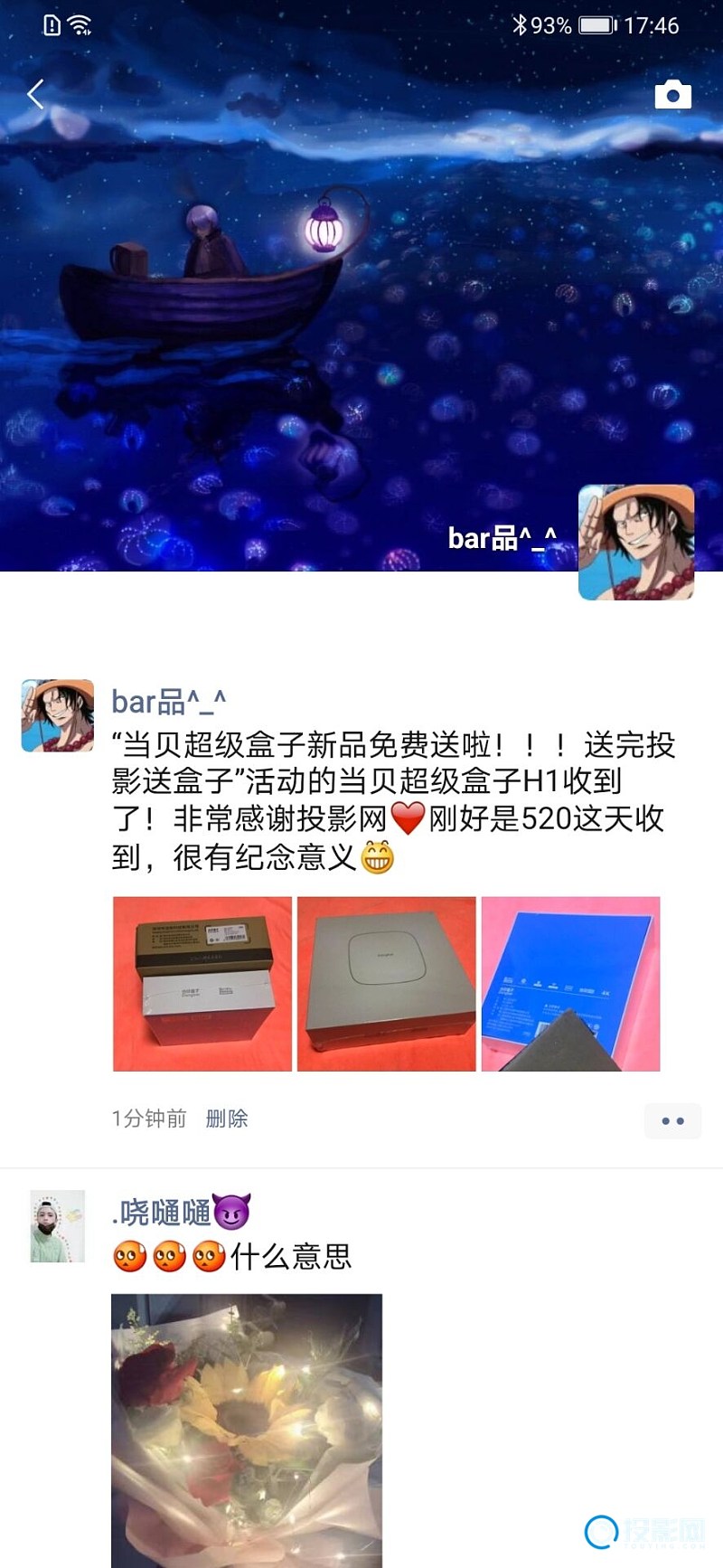 当贝投影618真5折收藏加购晒图活动奖品收到