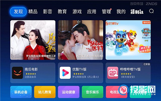 要用坚果J9听歌,自然就需要下载安装音乐软件,上网下载通过U盘拷贝下载有点繁琐。我们可以通过投影仪上的当贝市场下载一款听歌软件。下面就为大家分享一下怎么下载安装听歌软件。