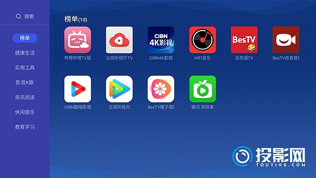 2.网上下载单个的TV版软件apk文件后,通过U盘拷贝的方式,安装到投影仪中;